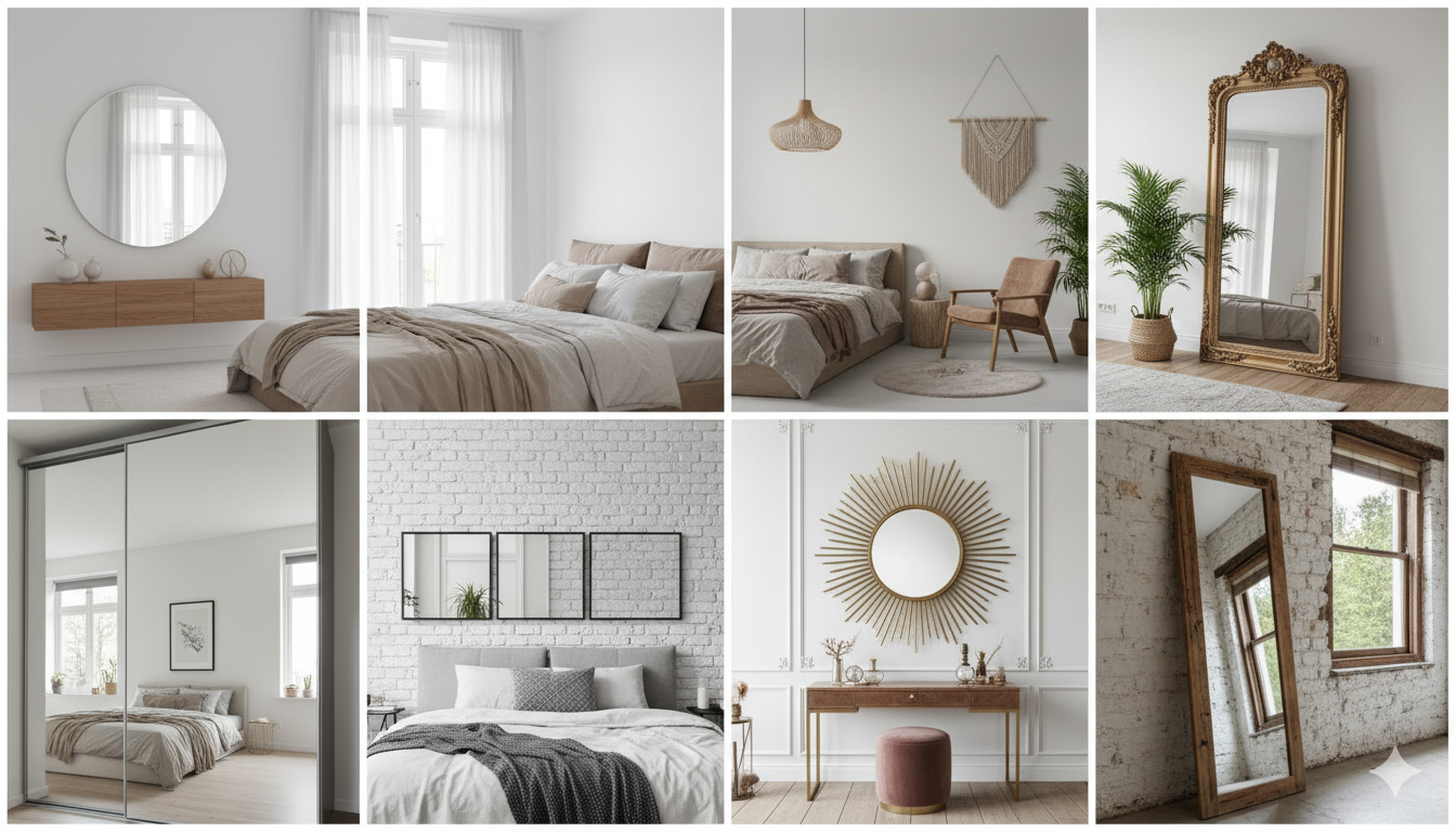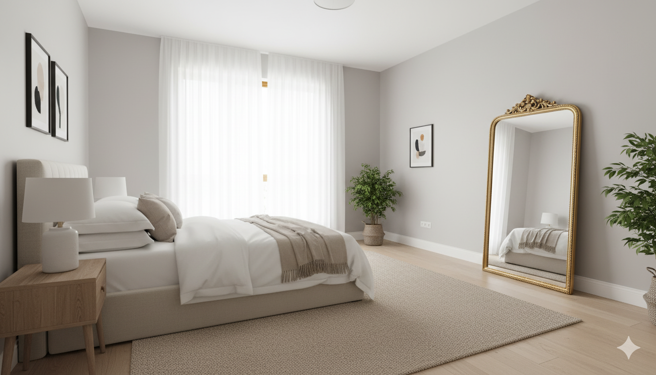 Да, можно — и даже нужно, если подойти с умом. Зеркало добавляет свет, отражает солнечные лучи, помогает создать ощущение глубины. Главное — не нарушить баланс.Зеркала в спальне хорошо смотрятся, если они не отражают кровать напрямую.