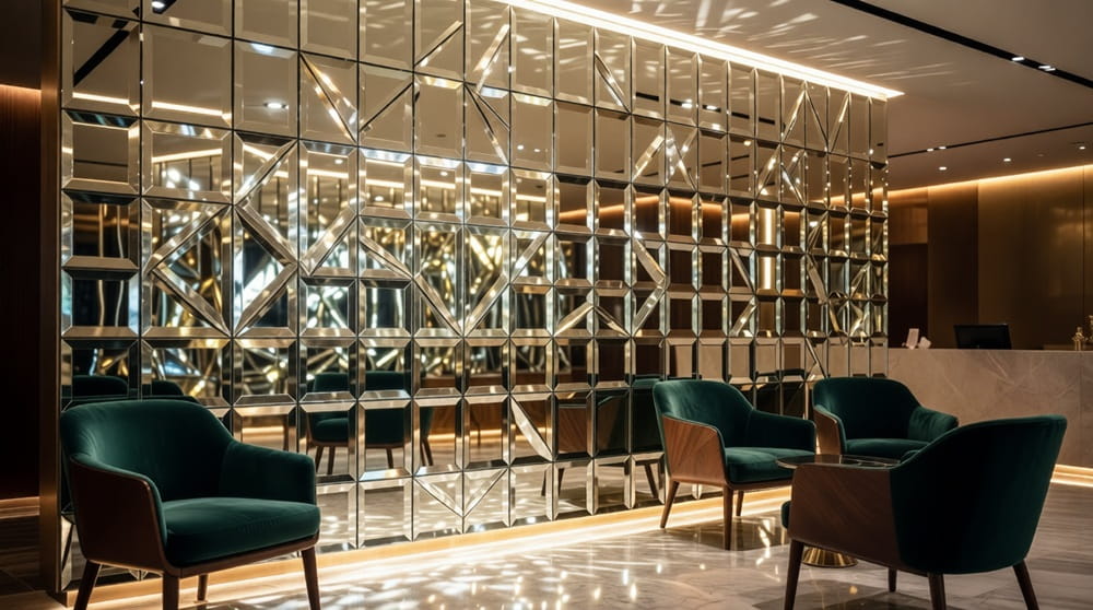 В офисах, кафе и салонах красоты зеркальная плитка выполняет сразу две функции: имиджевую и практическую. Для бизнеса важно создать атмосферу премиальности и комфорта. Зеркальные вставки в холле бизнес-центра или за стойкой ресепшн моментально повышают статус заведения в глазах клиентов.